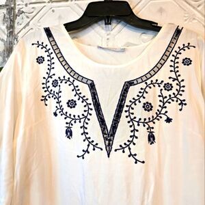 Solitaire by Ravikhosla Embroidered White and Blue Women's Top Scalloped Hem M
