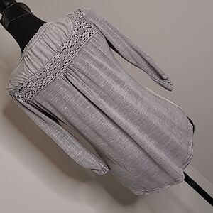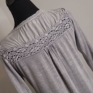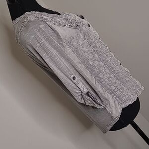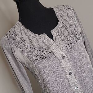 Solitaire sx M distressed embroidered, crochet top abalone buttons