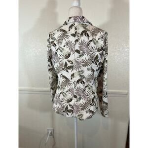 Solitaire women sz L linen blend palm leaf blazer jacket 1073
