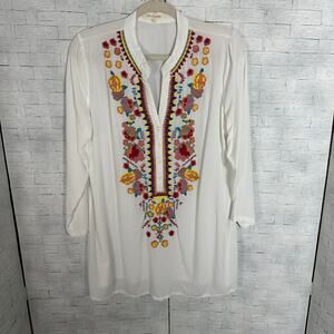 Solitaire women’s lightweight peasant top roll tab sleeve embroidered bohemian
