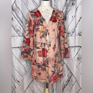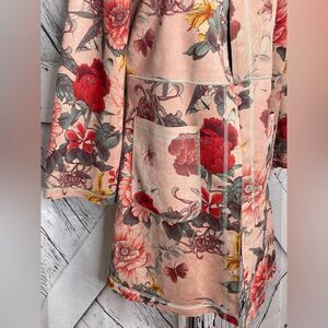 Solitaire x Anthropologie Faux Suede Open Front Floral Coat M