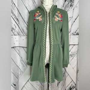 Solitaire Embroidered Full Zip Tunic Hooded Sweatshirt Green Size M
