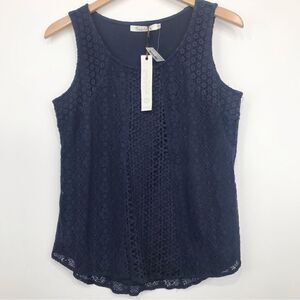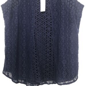 Solitaire NEW with Tags Blue Crochet Lace Sleeveless Blouse