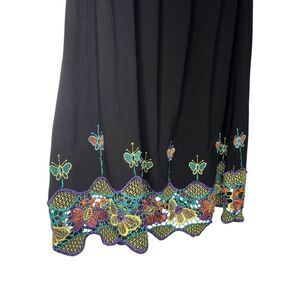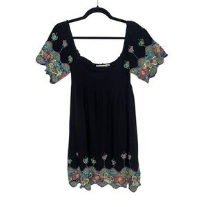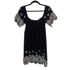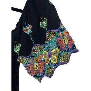 Solitaire Women’s Small off the Shoulder Dress Floral Embroidered Sleeves Black
