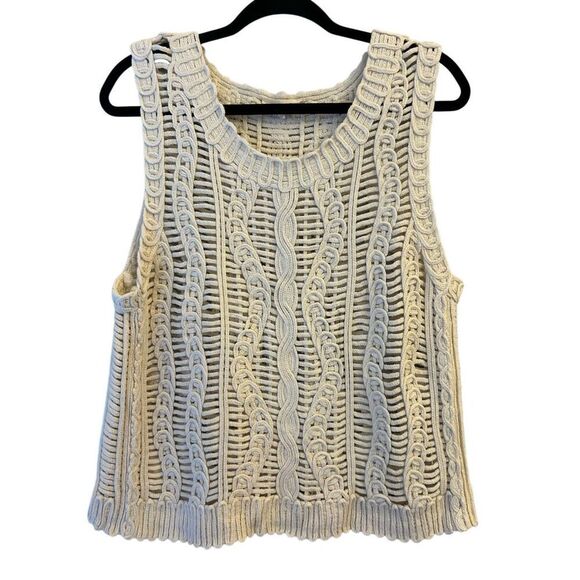 Solitaire boho crochet vest sz L layered festival neutral nautical versatile