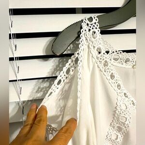 Lace trimmed white with open shoulder and excellent condition and smoke free home.