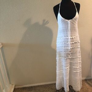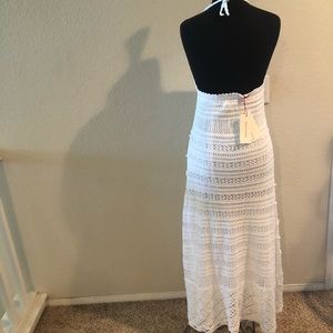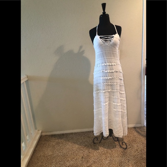 Romantic and playful, our white crochet dress has a fitted silhouette that’s made of stunning hand-crocheted knitted fabric. With a halter neckline and a skin-bearing open back, this forever favorite features adjustable ties in the back that offer a perfect fit. while the elegant cut outs make the Crochet feel like it was made for summer. Slip this on over a swimsuit for chic beachside gatherings. dinner or pool side