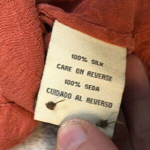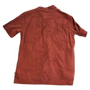 Solitude Mens Shirt Medium Short Sleeve 100% Silk Button Up Textured Casual Rust