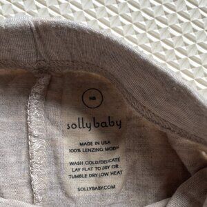 Solly baby newborn set with swaddle wrap. Includes newborn size shirt top, footie pants, and swaddle wrap. I believe the color is flax. Good condition with some washwear. Washed using tide free and gentle. Smoke free/ pet free home.