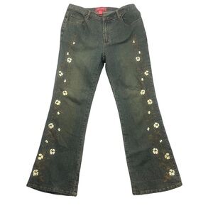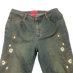 Solo 14 Vintage Jeans Floral Printed legs Cotton Blend Straight Flare Zipper
