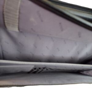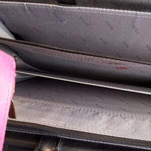 Black solo brief case clean inside has zippers and velco attachments 2 Handles zipper on top for closure Has no Over the shoulder strap