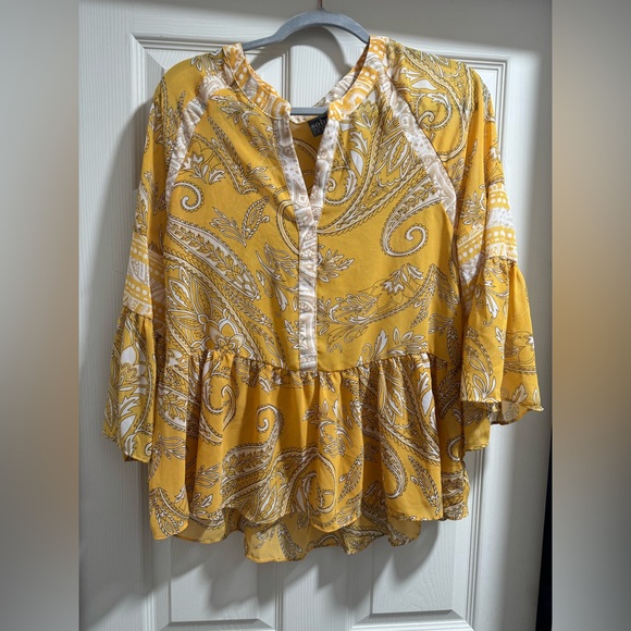 Solo Jeans - New York & Co. Yellow Paisley Blouse / Size Large NWT