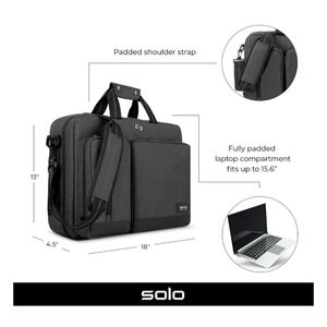 Solo Laptop Bag 15" Padded Multiple Pockets Backpack Convertible Gray