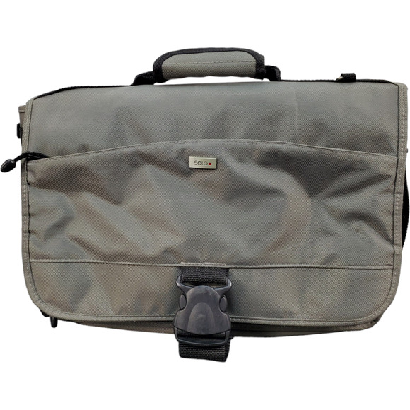 Solo Messenger Laptop Bag Gray Crossbody Adjustable Strap Zip Closure Logo