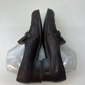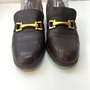 Solos Brown Leather Slip on Ladies Loafers Gold Buckle Size 8.5N
