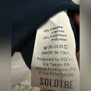 This Solotre sweater is a must-have in your wardrobe. The beautiful blue color and knit fabric type give it a stylish and elegant look. The long sleeves and open back design make it perfect for any occasion. The sweater is made in Italy and comes in a size Large.