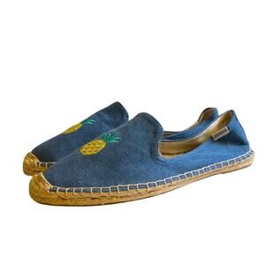 Soludos Anthropologie Chambray Blue Slip On Jute Espadrilles Women 10M Pineapple