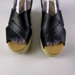 Soludos Black Leather Espadrille Slingback Platform Sandals Womens Size 8