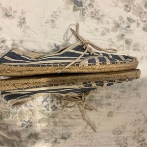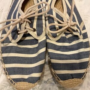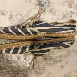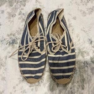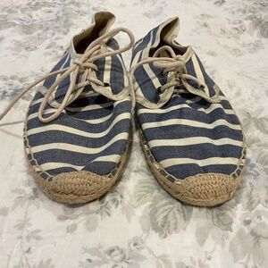 Soludos Blue White Stripe Original Classic Espadrilles Lace Tie Up Size 9