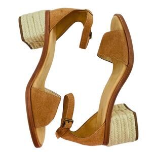 Soludos Capri Tan Suede Espadrille Block Heel Ankle Strap Casual Sandals Sz 7.5