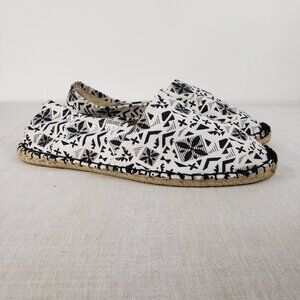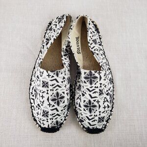 Soludos Dali Espadrille Ivory Black Printed Canvas Shoe Size 45 US Mens 11-11.5