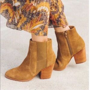Soludos Emma Brown Stacked Heeled Chestnut Suede Ankle Boots Booties 9.5