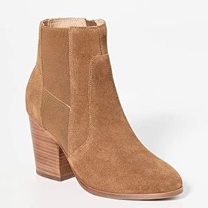 Soludos Emma Chestnut Suede Ankle Booties Brown Tan Leather Casual Block Heel Boots