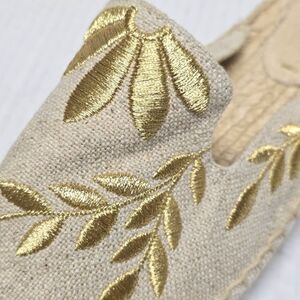 Soludos Gold Floral Embroidered Canvas Espadrille Mules By Anthropologie 9.5