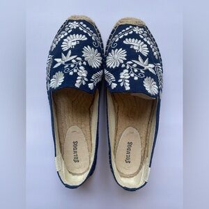 Soludos Ibiza Boho Floral Embroidered Espadrilles Navy Blue Size 9