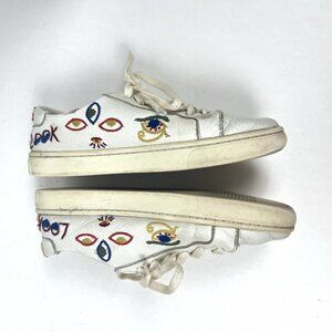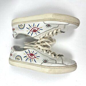 Soludos Ibiza Look Sneakers Embroidered Leather Evil Eye Rainbow White US 7 Boho