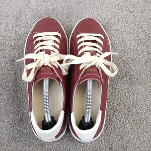 Soludos Ibiza Sneakers Womens 8 Shoes Low Top Red Burgundy Leather White Lace Up