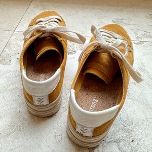 Soludos Ibiza women’s platform sneakers suede lace up size 7.5 mustard yellow