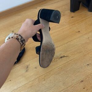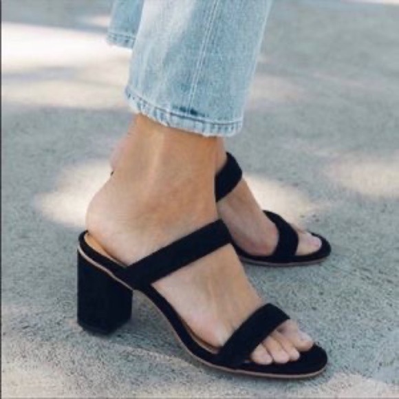 Slip into the minimalist beauty of the leather Soludos® Ines Heel featuring a dual strap design with soft leather lining, cushioned leather footbed, and wrapped chunky heel.