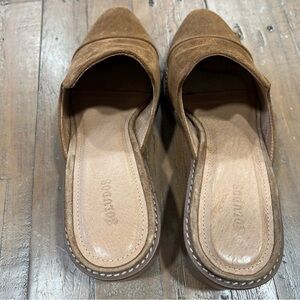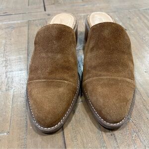 Soludos Ingrid Mules Women’s 7.5 Brown Suede Slip On Leather Block Heel