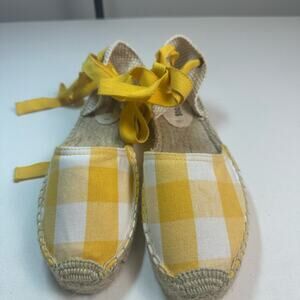 Soludos | Lauren Espadrilles Plaid Marigold Ankle Wrap Ties Jute NWOB