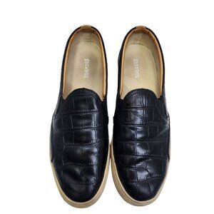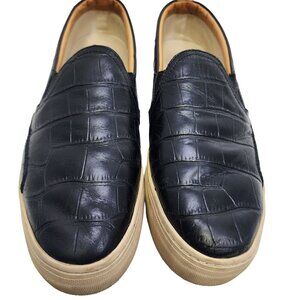 Soludos Leather Embossed Croc Bondi Platform Sneakers Black Size 10
