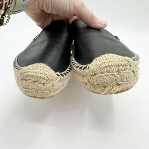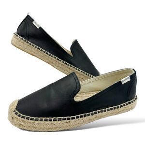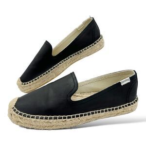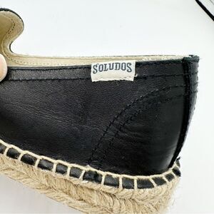 Soludos Leather Espadrille Platform Smoking Slipper Flat Size 8M Black