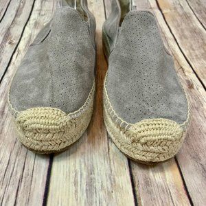 Layers of tightly braided jute trace the contours of a platform sole lifting an espadrille textured toe to heel with breezy dot perforations.
