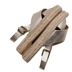 Stylish metallic sandals with a cross-strap design. Comfortable and chic for any occasion.