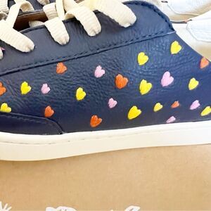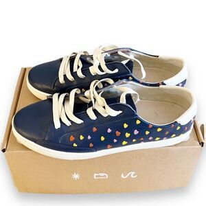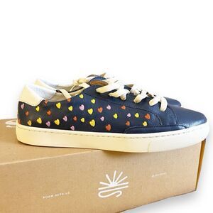 Soludos Queen Of Hearts Genuine Leather Embroidered Ibiza Sneakers, Blue Size 10- Major heart-eyes for these crazy-comfy sneakers. Made with super soft leather that requires no breaking in, plus, a cushy Ortholite® insole that feels like walking on a cloud. The laces are made entirely from recycled plastic bottles, the outsole is made from 20% recycled rubber, and the soft upper is made at a LWG certified gold-rated tannery.