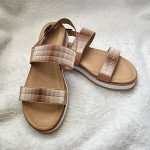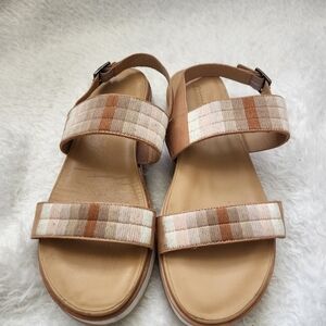 In good pre-owned condition. More sign of wear to right sandal but still in good shape. Please see pictures.