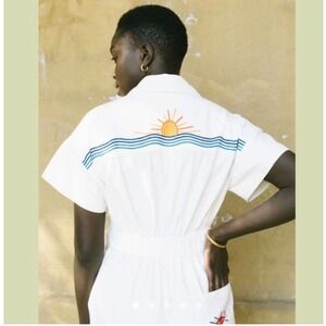 Soludos Rialto Organic Jumpsuit Romper New With Tags White Embroidered Size Sm