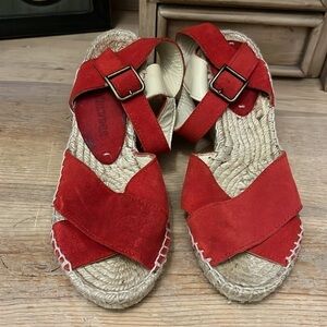 Soludos Sandals Espadrilles Wedge Red Suede Size 9