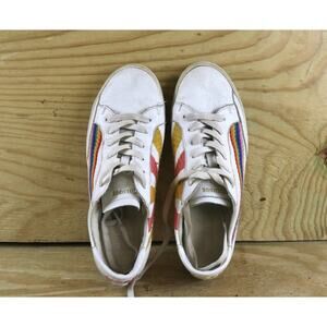 Soludos Sneakers 9.5 White Leather Rainbow Wave Good Vibes Embroidered