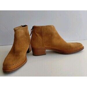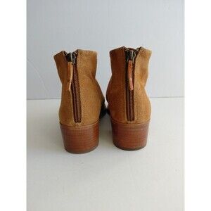 Soludos Sz 5.5 Beige Suede Pointed Toe Booties w/Wood Stacked Low Heel Back Zip
