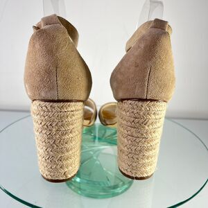 Soludos Tall Capri Heel Sandals Beige Suede Leather Ankle Strap Jute Block
