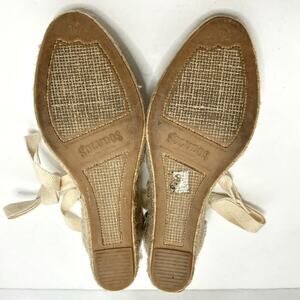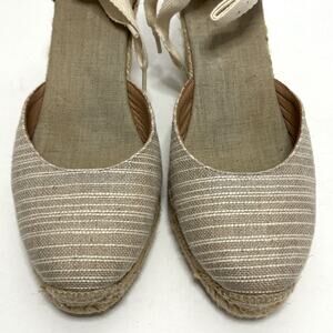 Soludos Tan White Stripe Ankle Wrap Espadrille Wedge Heels 10
