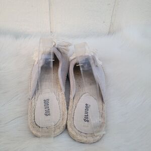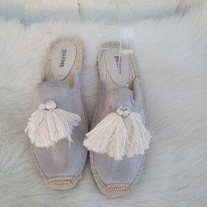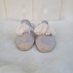 Soludos Tassel Espadrille Mules Womens size 7 Shoes Flats Natural Suede Gray