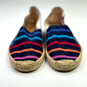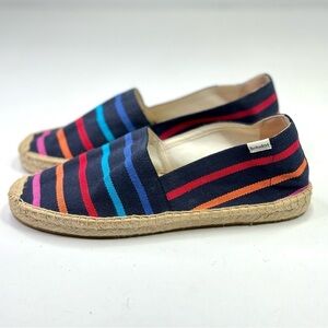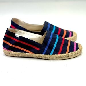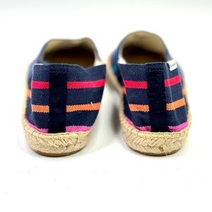 Soludos The Dali rainbow striped espadrilles navy background recycled cotton 9