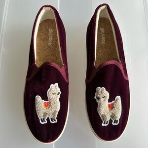 Soludos Velvet Novelty Llama Slip On Sneakers Size 9.5 Animal Artsy Unique